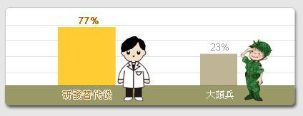 大頭兵的役期已經減降為一年了,對於許多即將服兵役的役男們真是一個天大的好消息。許多人都在說:忍個一年就過了,但是近日由104人力銀行所公佈的學生調查中,有八成以上的學生依然對研發替代役有興趣。