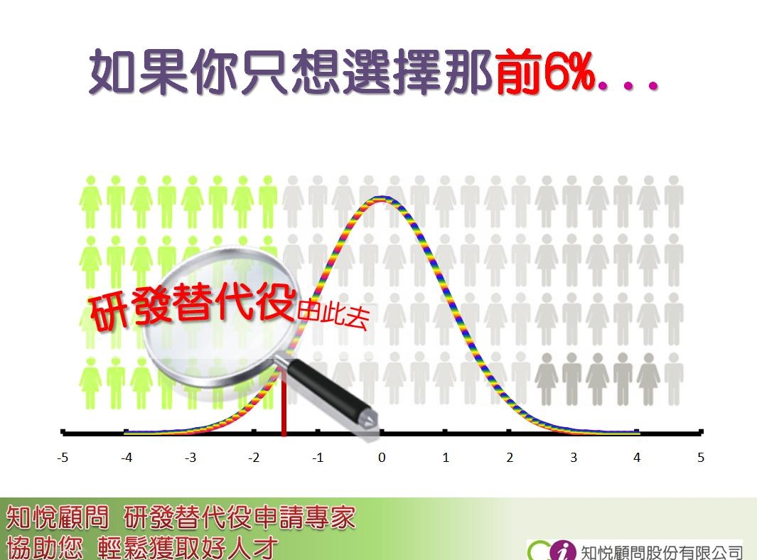 研發替代役鎖定前百分之六的人才,需具備國內外碩士以上學歷,且與企業綁約3年,工作時間穩定,一向是科技產業獵才競爭賽中重要的關鍵指標,也是市場最受矚目的研發新血。百大廠商無不積極爭取,而中小企業更需借重提升研發實力。
